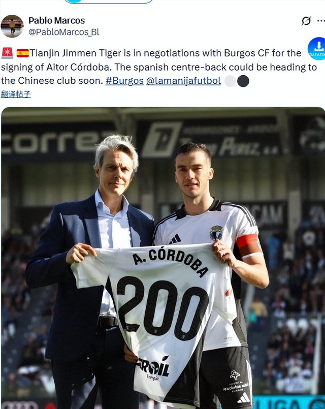 天津津门虎成为首选,核心源于后防补强的迫切性与谈判的实质性进展。上赛季外援中卫罗斯已官宣加盟首尔FC,球队后防线瞬间出现核心空缺,急需引入即战力填补。而科尔多瓦的技术特点恰好精准适配。他身高191cm,空中对抗成功率稳居西乙中上游,场均4.7次解围的数据能筑牢高空防线,且防守纪律极佳,职业生涯极少吃到红黄牌,成熟的防守控制力正是津门虎所需。更关键的是,多家权威媒体与记者证实,津门虎已与科尔多瓦开启谈判,球员甚至已不再随布尔戈斯前往客场,离队手续几近完成,这种实质性推进远超其他潜在下家。