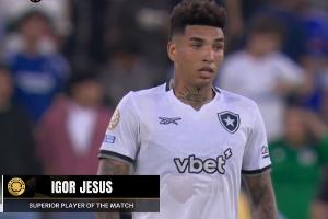 世俱杯小组赛B组第2轮,博塔弗戈1-0击败巴黎两战全胜领跑,伊戈尔-热苏斯打入全场唯一进球,他也当选为全场比赛最佳球员。